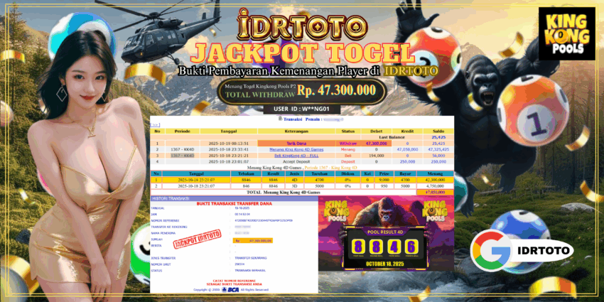 IDRTOTO BAYAR LUNAS JACKPOT PERMAINAN KINGKONG POOLS P2 Rp.47.300.000 – LUNAS