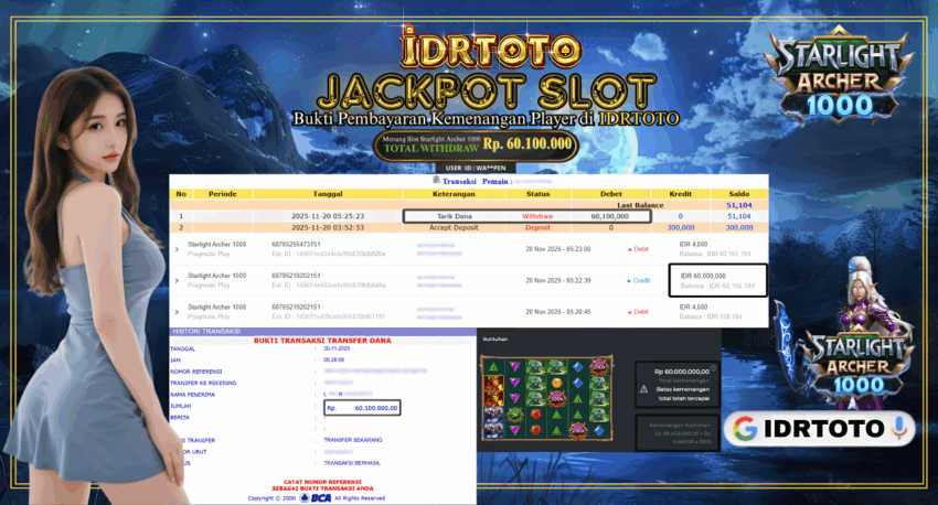 IDRTOTO BAYAR LUNAS JACKPOT PERMAINAN SLOT STARLIGHT ARCHER 1000 Rp.60.100.000 – LUNAS