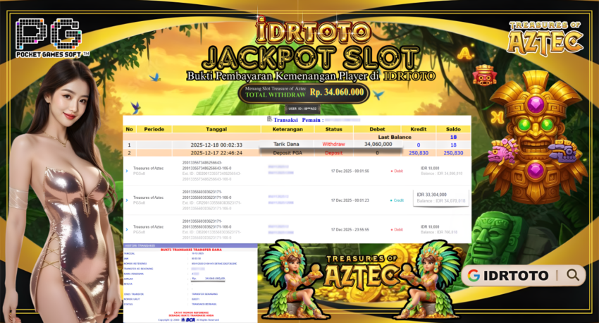 IDRTOTO BAYAR LUNAS JACKPOT PERMAINAN SLOT TREASURES OF AZTEC Rp.34.060.000 – LUNAS