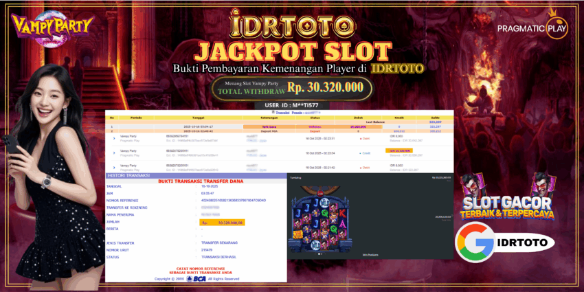 IDRTOTO BAYAR LUNAS JACKPOT PERMAINAN SLOT VAMPY PARTY Rp.30.320.000 – LUNAS