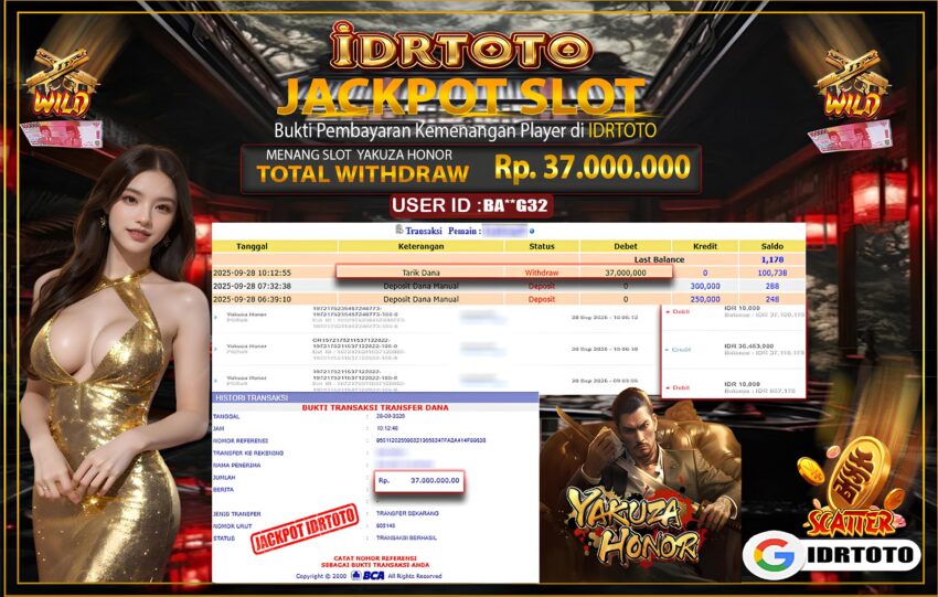 IDRTOTO BAYAR LUNAS JACKPOT PERMAINAN SLOT YAKUZA HONOR Rp.37.000.000 – LUNAS