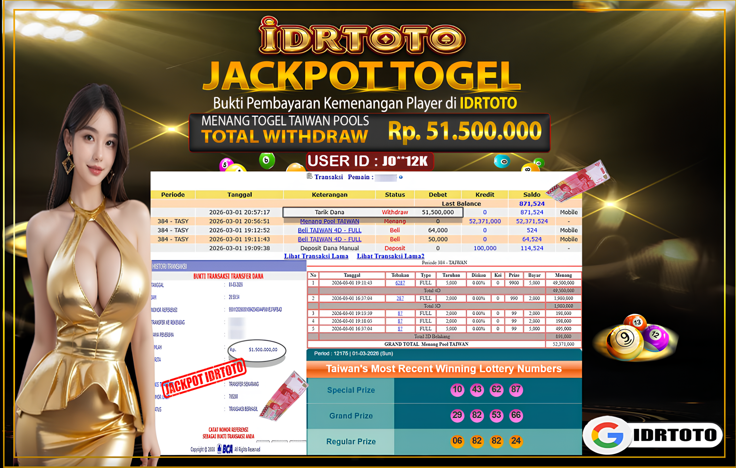 IDRTOTO BAYAR LUNAS JACKPOT PERMAINAN TAIWAN POOLS Rp.51.500.000 – LUNAS