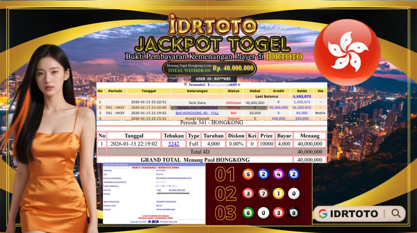 IDRTOTO BAYAR LUNAS JACKPOT PERMAINAN TOGEL HONGKONG LOTTO Rp.40.000.000 – LUNAS