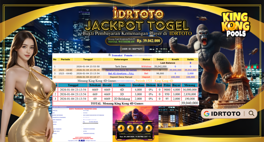 IDRTOTO BAYAR LUNAS JACKPOT PERMAINAN TOGEL KINGKONG POOLS P2 Rp.39.042.000 – LUNAS