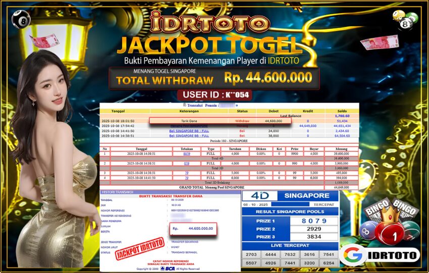 IDRTOTO BAYAR LUNAS JACKPOT PERMAINAN TOGEL SINGAPORE Rp44.600.000 – LUNAS