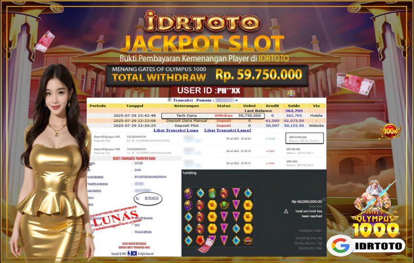 IDRTOTO BAYAR LUNAS JACKPOT SLOT GATES OF OLYMPUS 1000 Rp.59.750.,000 – LUNAS