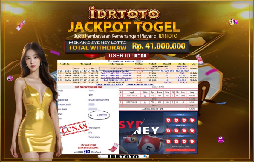 IDRTOTO BAYAR LUNAS JACKPOT TOGEL SYDNEY LOTTO Rp.41.000.,000 – LUNAS