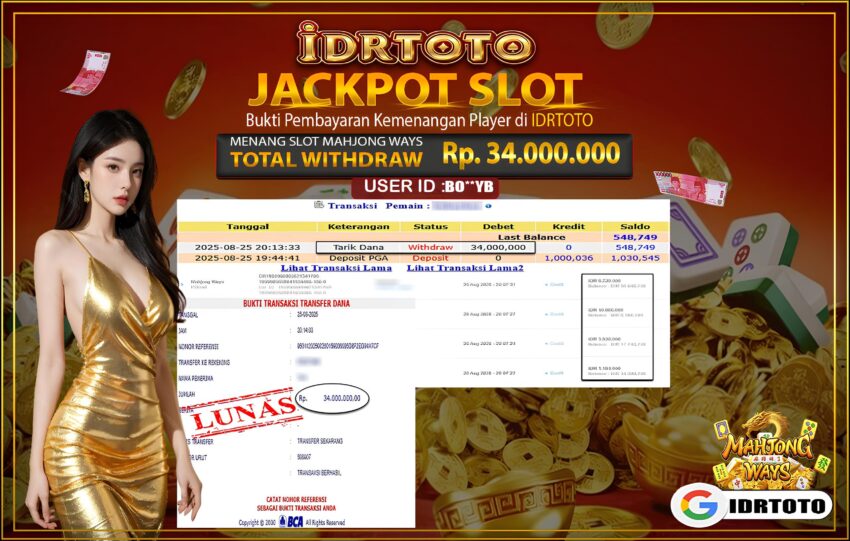 IDRTOTO BAYAR LUNAS SLOT MAHJONG WAYS 1 Rp.34.000.,000 – LUNAS