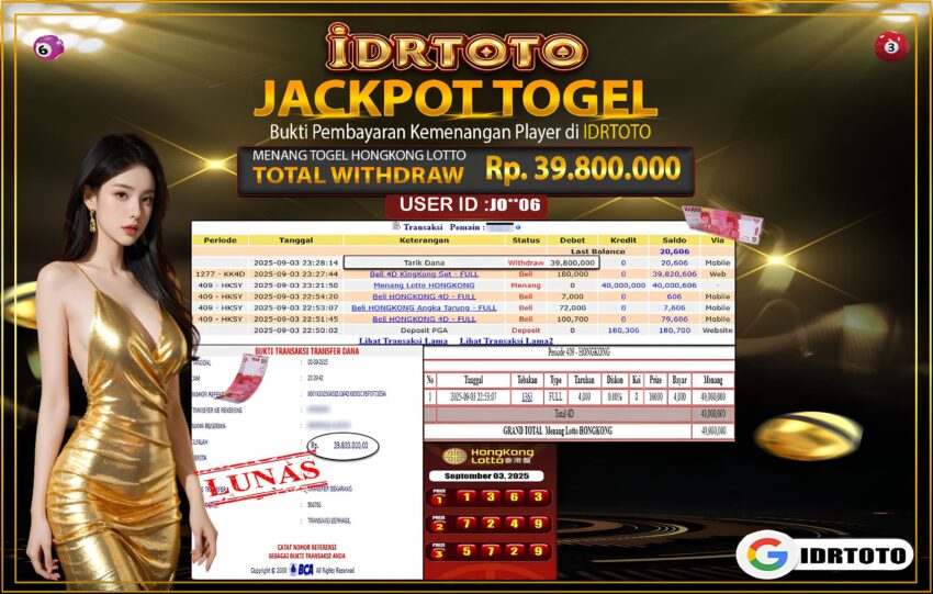 IDRTOTO BAYAR LUNAS TOGEL HONGKONG LOTTO Rp.39.800.000 – LUNAS