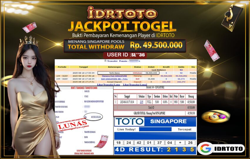 IDRTOTO BAYAR LUNAS TOGEL SINGAPORE POOLS Rp.49.500.,000 – LUNAS