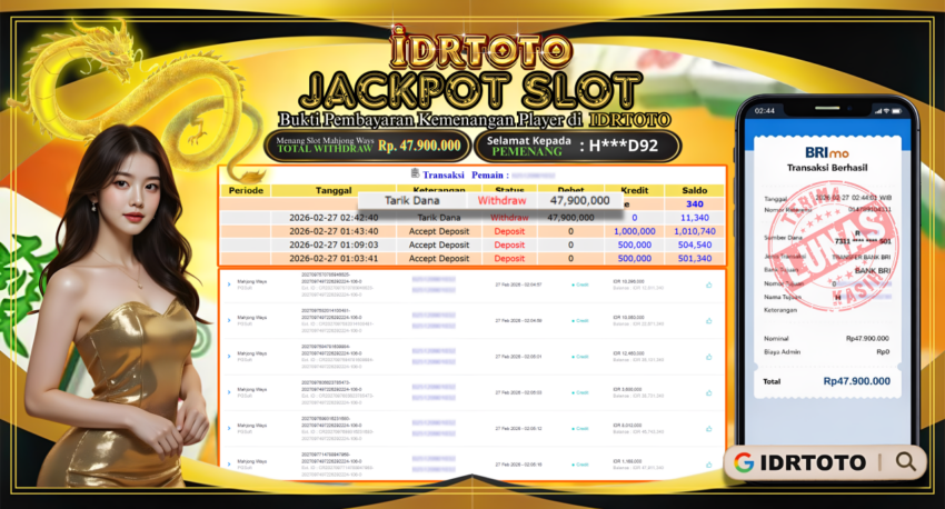 IDRTOTO BAYAR LUNAS JACKPOT PERMAINAN MENANG SLOT MAHJONG WAYS Rp.47.900.000 – LUNAS