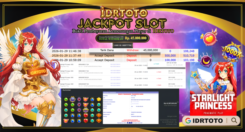 IDRTOTO BAYAR LUNAS JACKPOT PERMAINAN MENANG SLOT STARLIGHT PRINCESS 1000 Rp.45.000.000 – LUNAS